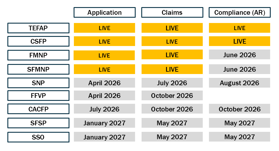To prepare for the transition, all system users should review the rollout dates for the programs they operate (shown below) and begin planning for their organization’s transition from TX-UNPS to TANS.