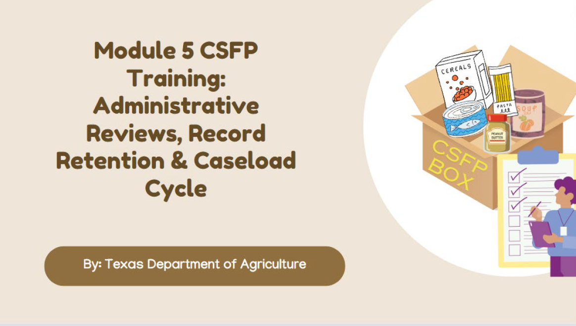 The course provides essential knowledge and practical tools to support effective CSFP food box assembly, inventory management, and overall program operations—while ensuring compliance with federal regulations.