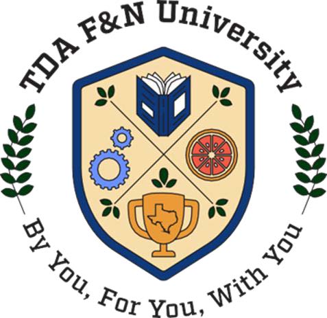 TDA F&N University offers both classroom-style and self-paced virtual training opportunities at no cost, designed to support USDA nutrition programs such as the CACFP, NSLP, SFSP/SSO, and USDA Foods. Additionally, year-round training is available through your local Education Service Center to support you in running compliant nutrition programs.