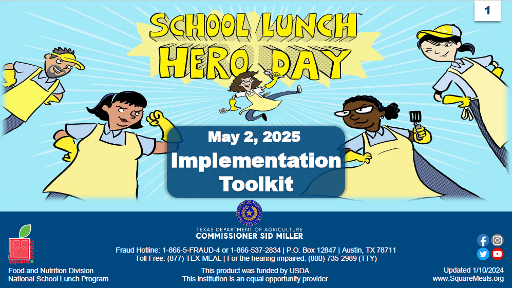 Not sure where to begin? Explore our Implementation Toolkit to learn more about activities and promotional materials offered by TDA and how to include them in your School Lunch Hero Day celebrations!
